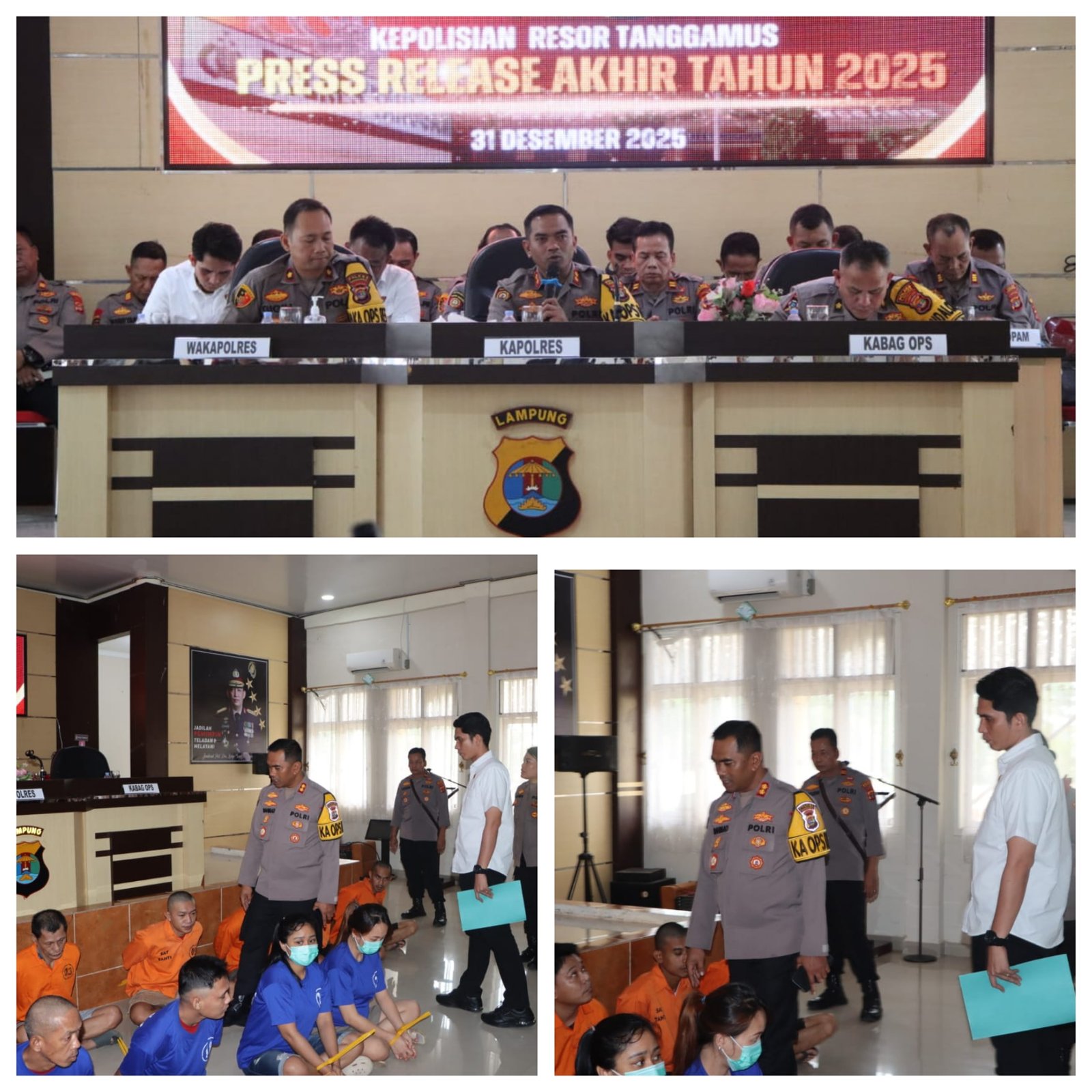 Konferensi pers dipimpin langsung oleh Kapolres Tanggamus AKBP Rahmad Sujatmiko, S.I.K., M.H., didampingi Wakapolres, para pejabat utama, Kapolsek jajaran, serta Kasi Humas Polres Tanggamus.