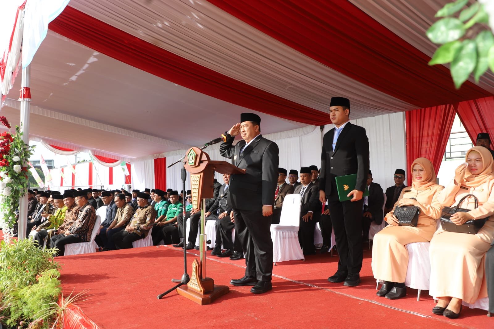 Bertindak sebagai Inspektur Upacara, Bupati Jombang Warsubi S.H., M.Si membacakan amanat dari Menteri Agama RI, Nasaruddin Umar. Upacara ini turut dihadiri Wakil Bupati Jombang Gus Salmanudin, S.Ag., M.Pd., Sekda Agus Purnomo, SH., M.Si., serta Kepala Kantor Kemenag Jombang, Dr. H. Muhajir, S.Pd., M.Ag. Kehadiran tokoh-tokoh lintas agama dari FKUB, Baznas, hingga pimpinan ormas seperti PCNU dan LDII, memperkuat potret Jombang sebagai harmoni mini Indonesia.