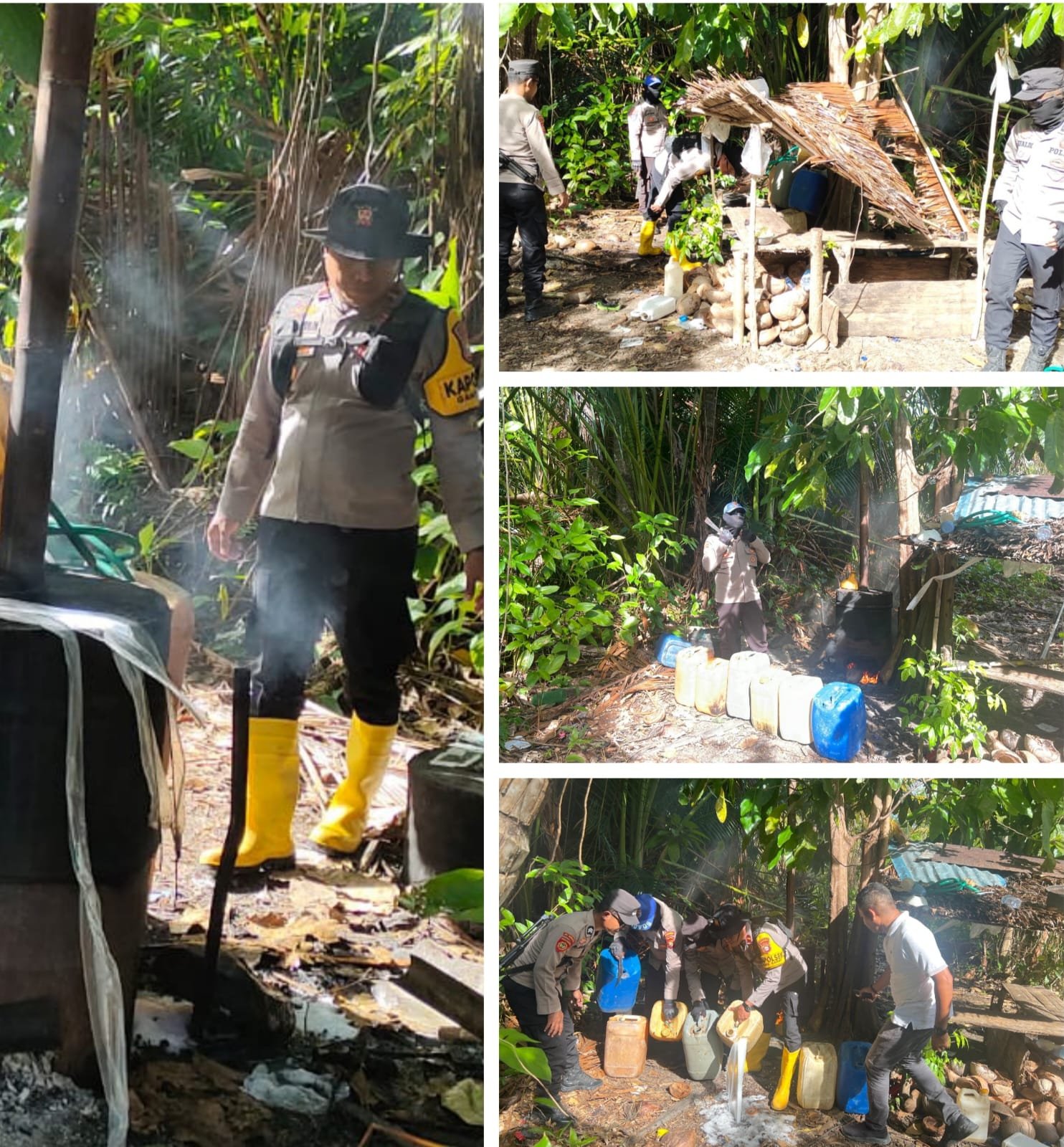 Halsel – Dalam ranka menayambut Bulan Suci Ramadahan 1447 Hijriah Tahun 2026, Resort Polsek Gane Barat, Reserse Polres Halmahera Selatan (Halsel). Provinsi Maluku Utara, kembali melakukan penyisiran di lokasi tempat penyulingan Miras Tradisional dan ditemukan puluhan kantong Captikus.