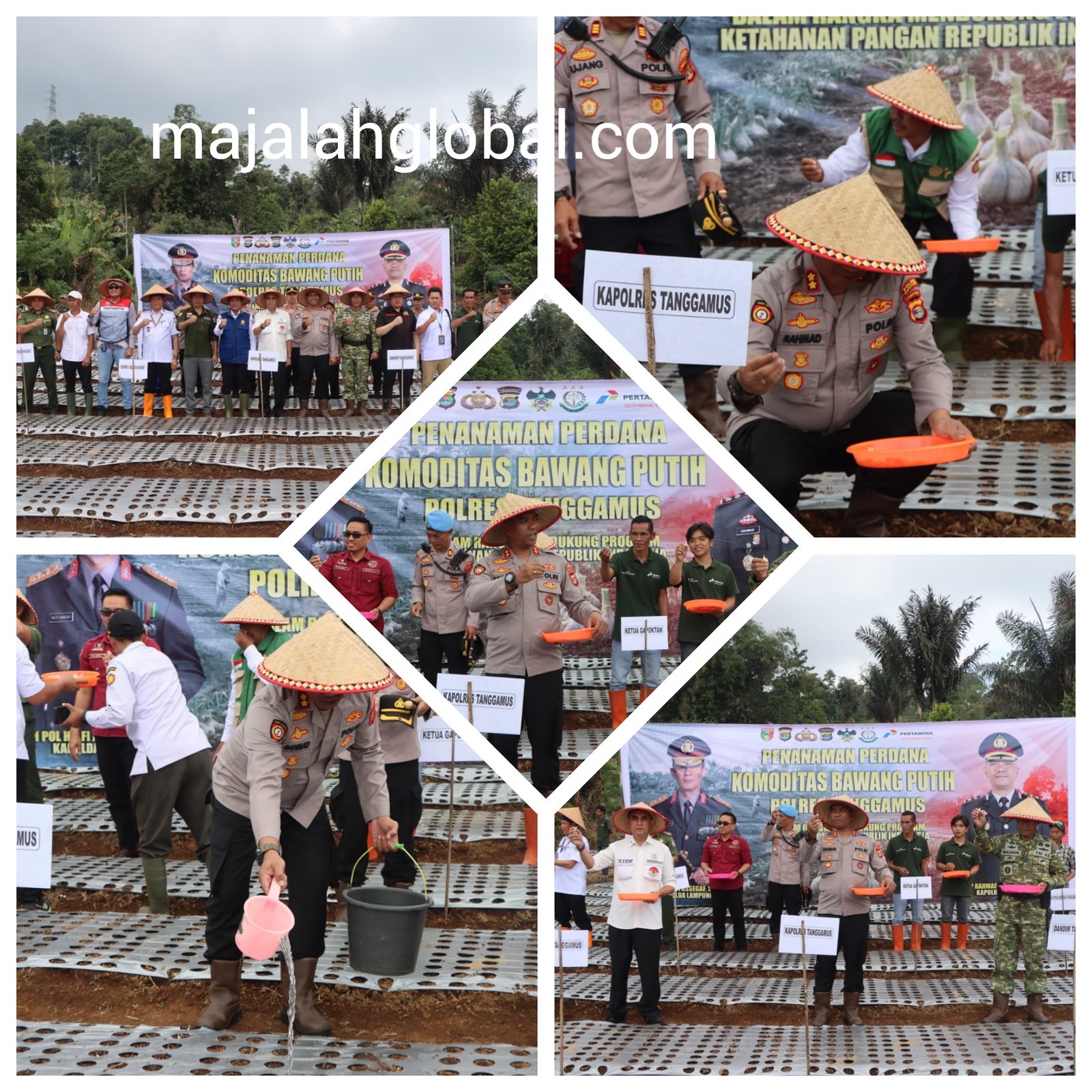 TANGGAMUS, majalahglobal.com — Polres Tanggamus melakukan penanaman perdana bawang putih di lahan seluas sekitar satu hektar di Pekon Datarajan, Kecamatan Ulu Belu, Rabu (15/4/2026), sebagai langkah konkret mendukung program ketahanan pangan nasional dan swasembada hortikultura.